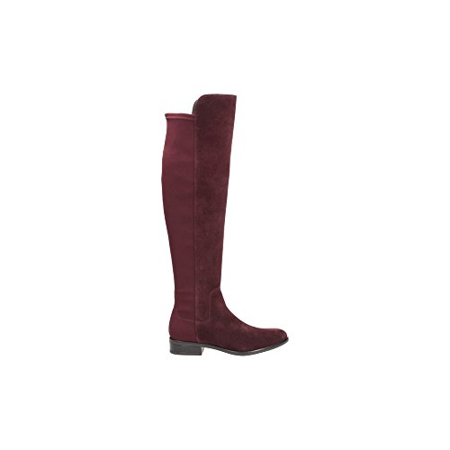 Caddy Belle, women's over the knee boots in aubergine suede - in an autumnal colour, these knee high boots feature a contrasting elasticated panel that provides a subtle sports edge while hugging the leg. Easy to slip on and off, these long-length boots feature a 3cm heel for everyday wearable height. Versatile enough to wear with floaty frocks, mini skirts or luxe leggings.